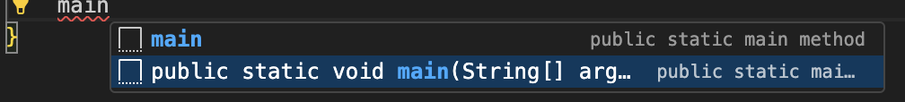 main만 입력해도 다음과 같이 뜬다!! ㅎㅎ